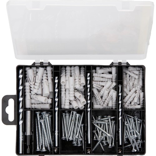 - U ovom setu sadržana su svrdla, tiple i vijci u svim uobičajenim veličinama, optimalno međusobno usklađeni.